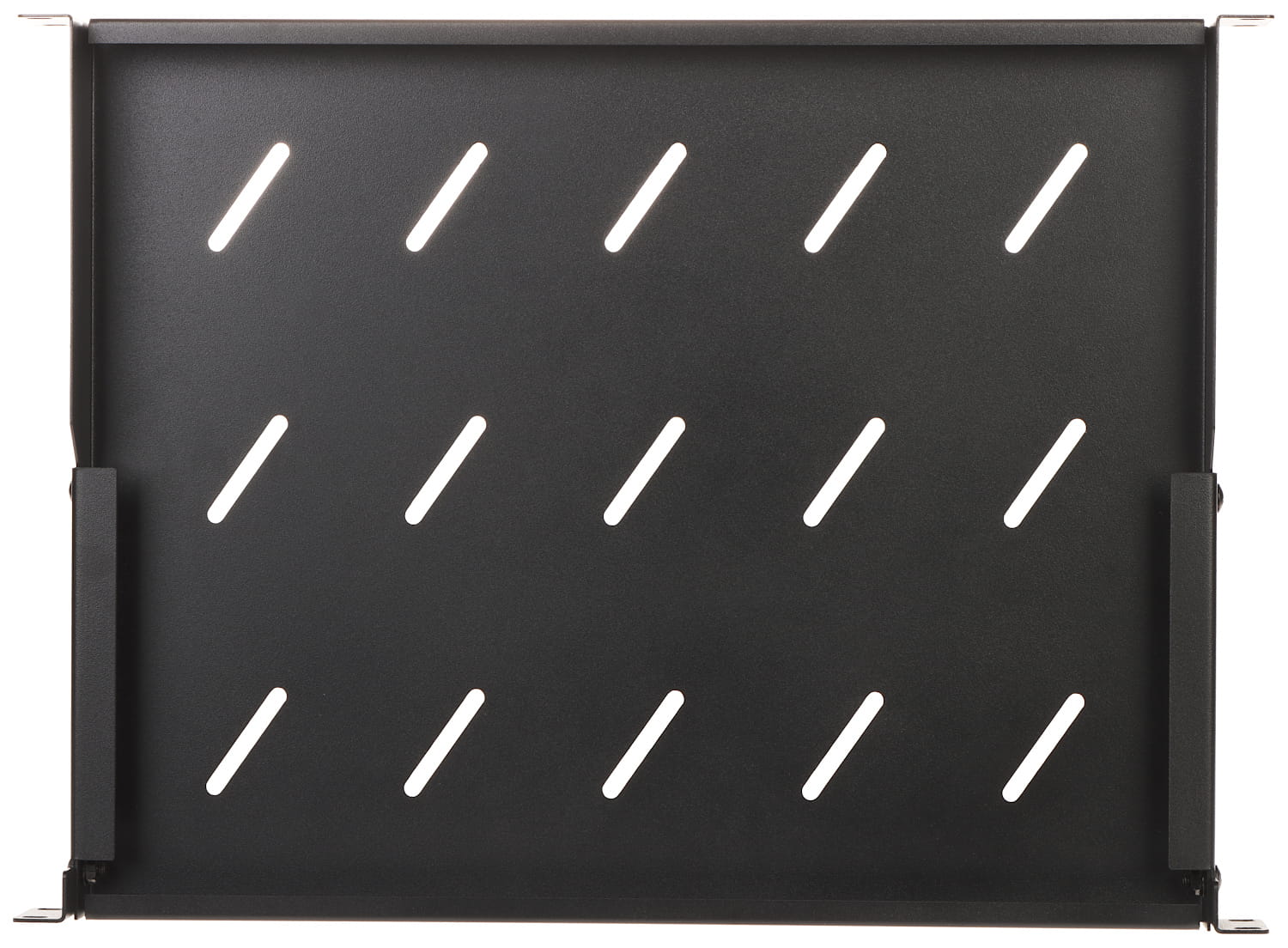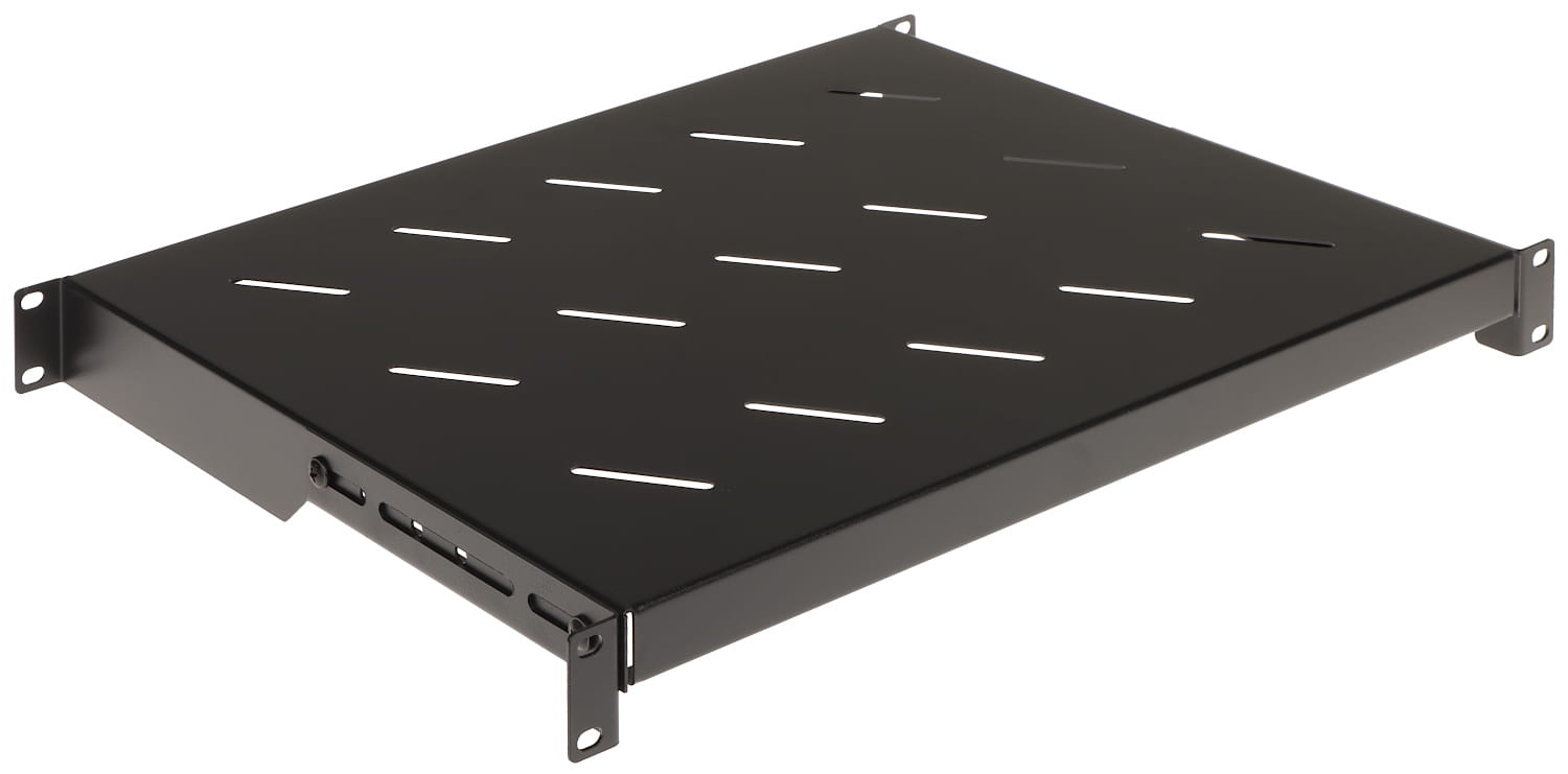 Regulowana półka do szafy RACK 19", przeznaczona do montażu urządzeń nie posiadających obudowy przystosowanej do montażu w szafach RACK