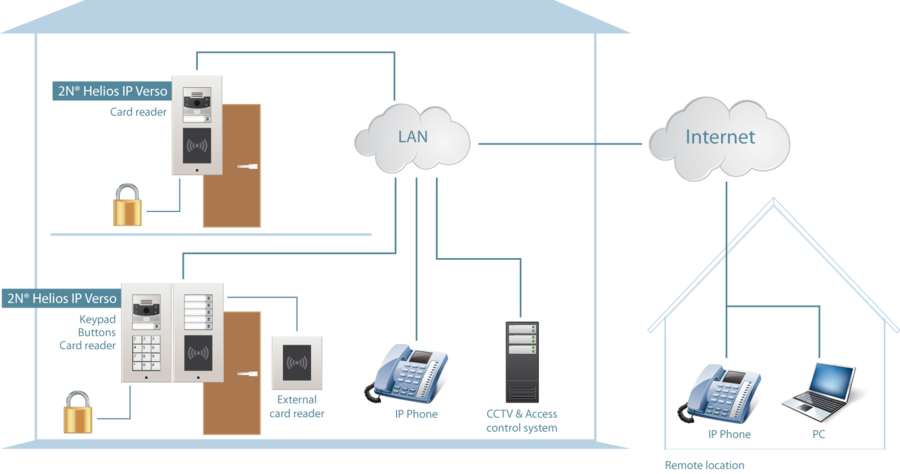 2N® IP Verso jest interkomem zaprojektowanym z myślą o bezpieczeństwie, dzięki swej modularności może być używany wszędzie, wystarczy określić konkretną funkcjonalność i przeznaczenie. Na przykład, można wybrać kamerę HD z podczerwienią i trybem nocnym lub czytnikiem kart inteligentnych. Może być łatwo zintegrowany z systemami monitoringu wizyjnego, kontroli dostępu i innymi, dzięki możliwości tworzenia skryptów, cały system może być stosowany jako element bezpieczeństwa i ochrony budynku.