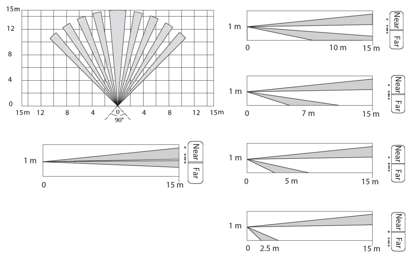 - Zasięg czujki PIR: 15 m / 90 ° ;