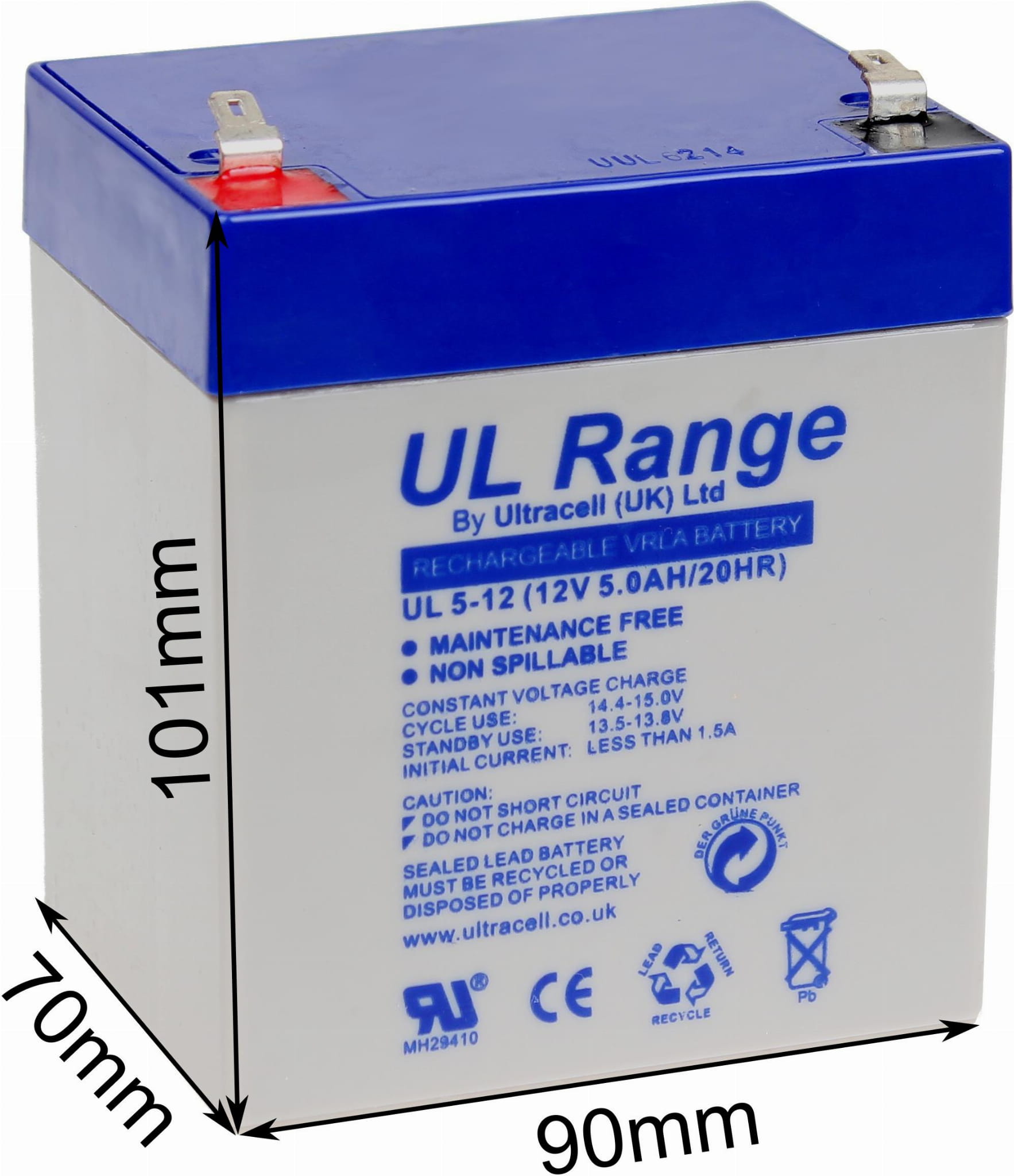 Akumulator AGM ULTRACELL UL 12V 5Ah - WYMIARY: