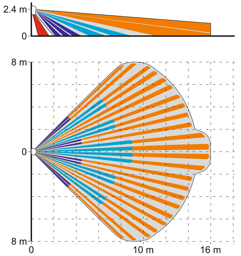 | Zasięg czujki PIR: | 16 m / 90 ° |