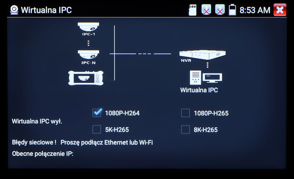 - Wybrane funkcje: Obsługiwane metody kompresji obrazu : H.265, H.264 ;