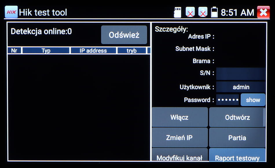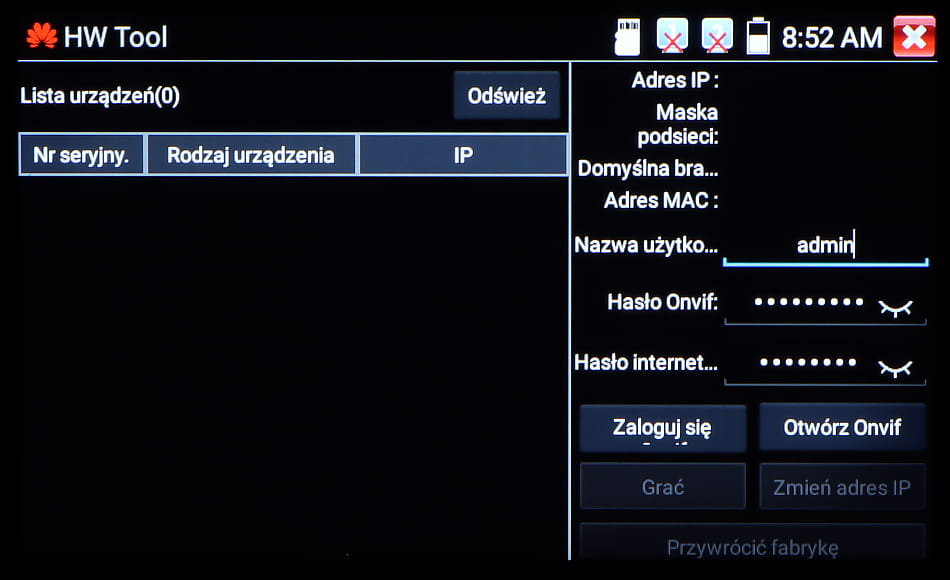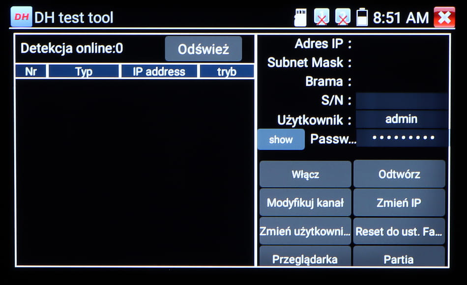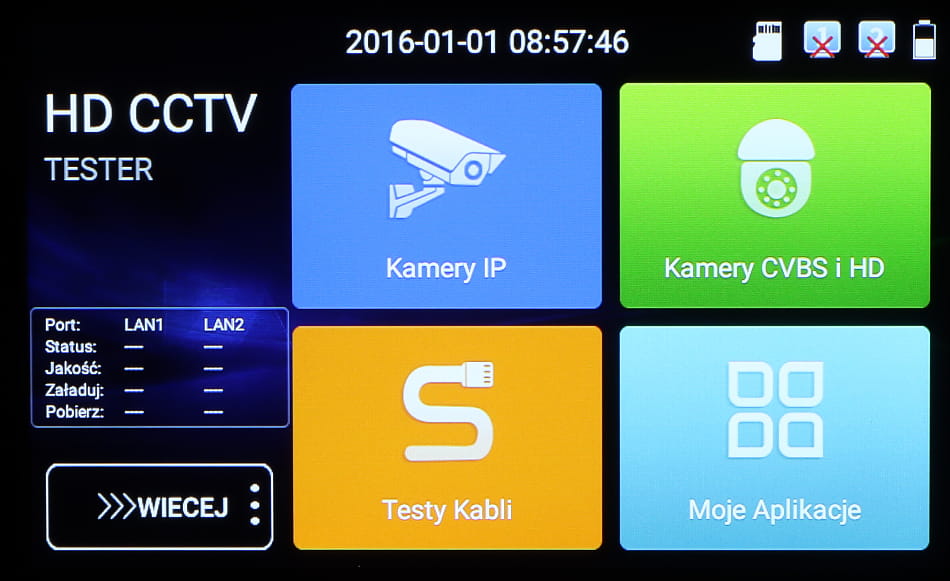 Wielofunkcyjny tester kamer AHD, HD-CVI, HD-TVI, IP, kamer analogowych, Speed Dome (PTZ), wyposażony w wiele dodatkowych funkcji, niezbędnych przy uruchamianiu instalacji CCTV