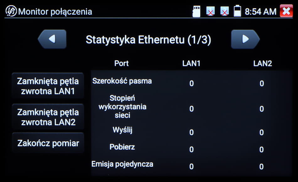 | Test skrętki lub linii telefonicznej: | Test połączenia kabli UTP lub telefonicznych, zakończonych wtykiem RJ-45 |