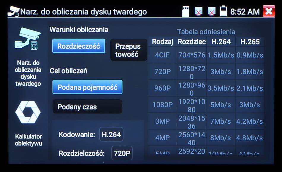 - Standard wizji: AHD - 8 Mpx, HD-CVI - 8 Mpx, HD-TVI - 8 Mpx, TCP/IP - 4K, CVBS - PAL / NTSC ;