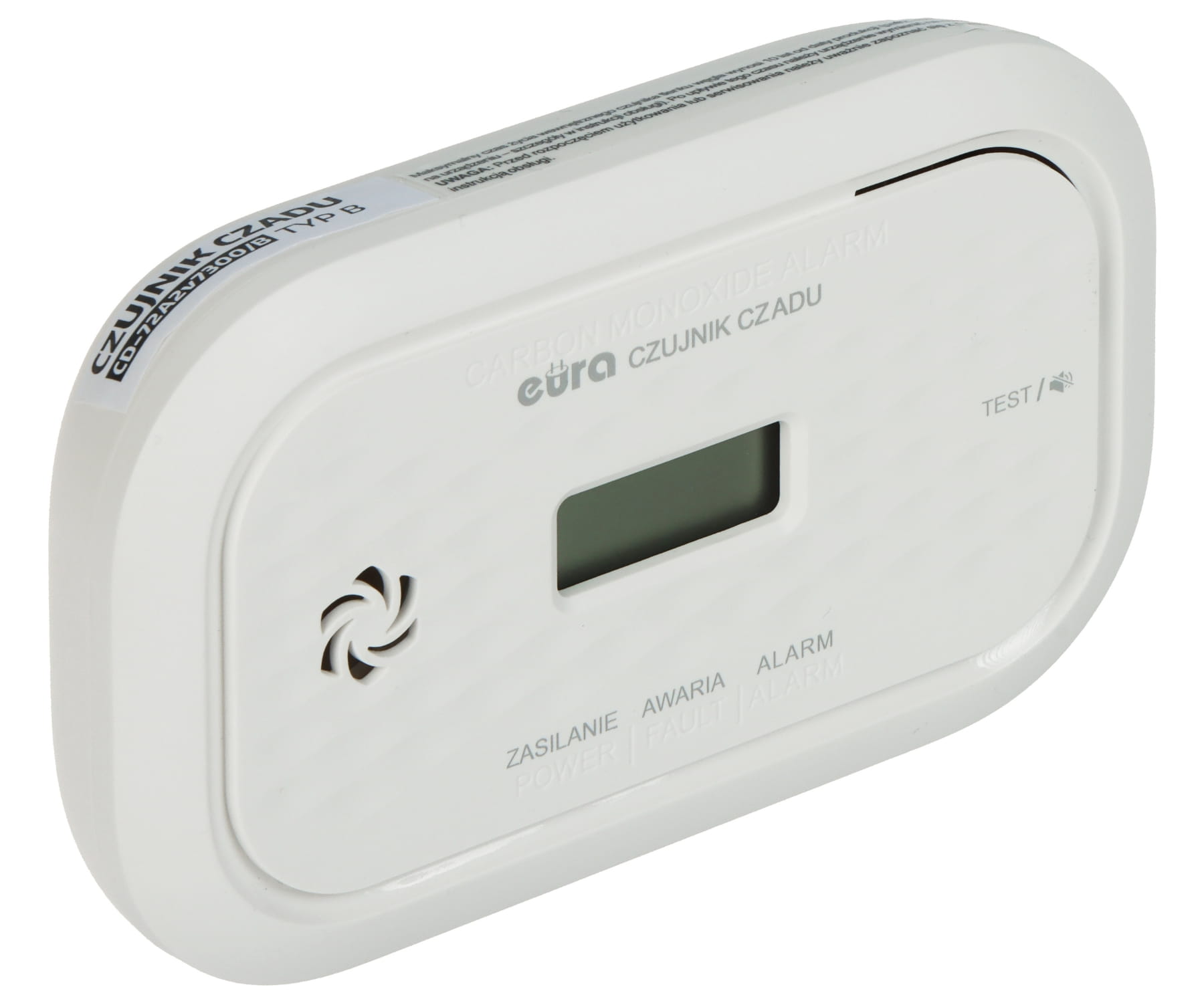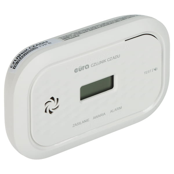 Detekcja: Tlenek węgla (CO) ; Zasilanie bateryjne: 2 x bateria LR6 (AA) (w komplecie) ; Wybrane cechy: Wyświetlacz LCD Zgodność z normą EN50291-1:2018 Certyfikat CNBOP-PiB ; Producent / Marka: EURA ; Gwarancja: 7 lat ;