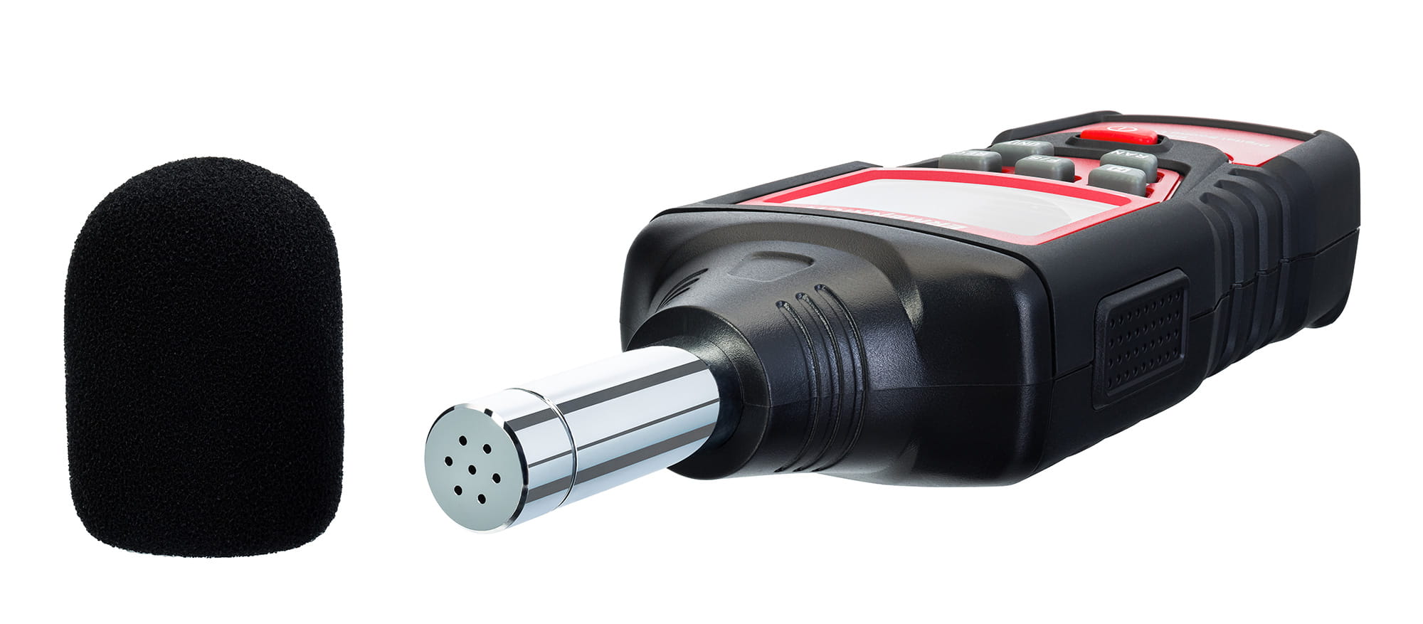 Miernik poziomu dźwięku umożliwia zapisywanie bieżących odczytów, a także zapamiętuje wartości graniczne (minimalne i maksymalne). Zakres pomiaru można regulować ręcznie lub automatycznie. Kolorowy ekran wyświetla poziomy hałasu w formie liczbowej i graficznej, a także wskazuje ostrzeżenie o niskim poziomie naładowania baterii.