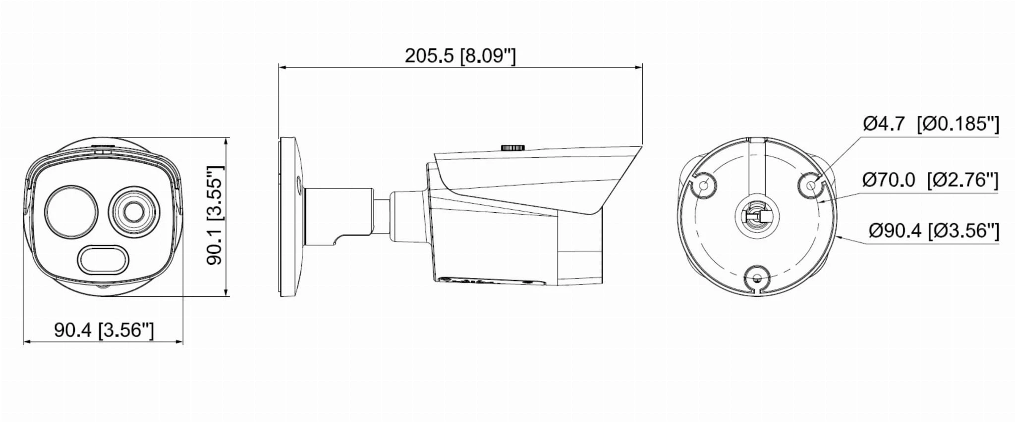 Przetwornik: Niechłodzony mikrobolometr VOx ; Wielkość matrycy: 256 x 192 px ; Kąt widzenia: 51 ° ; Rozdzielczość: 1280 x 960, 1024 x 768 px ; Przetwornik: 1/2.7 " ; Kąt widzenia: 71 ° ; Rozdzielczość: 2336 x 1752 - 4 Mpx ; Interfejs RS-485; Wejścia / wyjścia alarmowe: 2 / 2 ; Audio: Obsługa dwukierunkowego audio ; Zasilanie: PoE (802.3af), 12 V DC ;