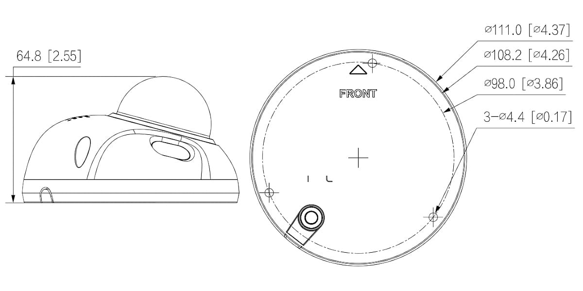 Kamera posiada bardzo płaski profil, dzięki czemu odstaje od sufitu na jedyne 65 mm