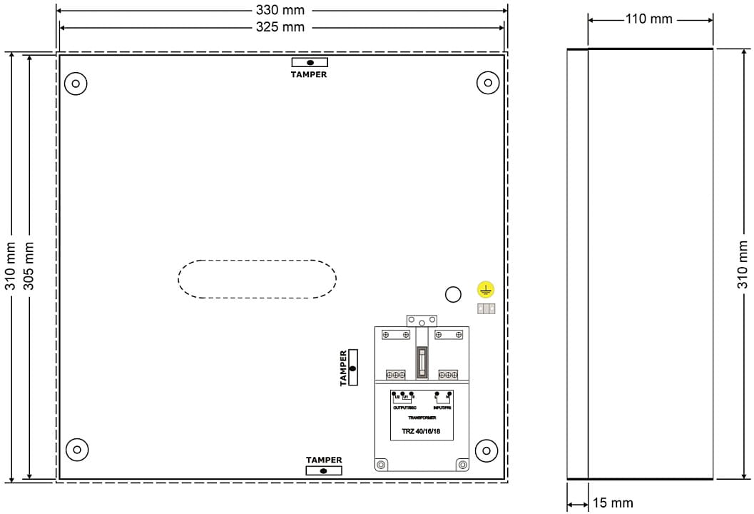 | Obciążalność wyjścia TAMPER: | max. 500 mA @ 50 V DC |