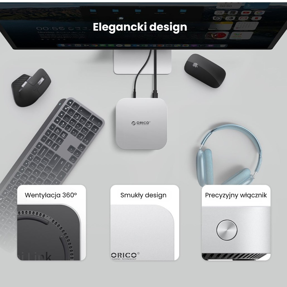 Orico Stacja dokująca do MacMini M4, USB-C 10 Gbps, z obudową M.2 NVMe, metalowa