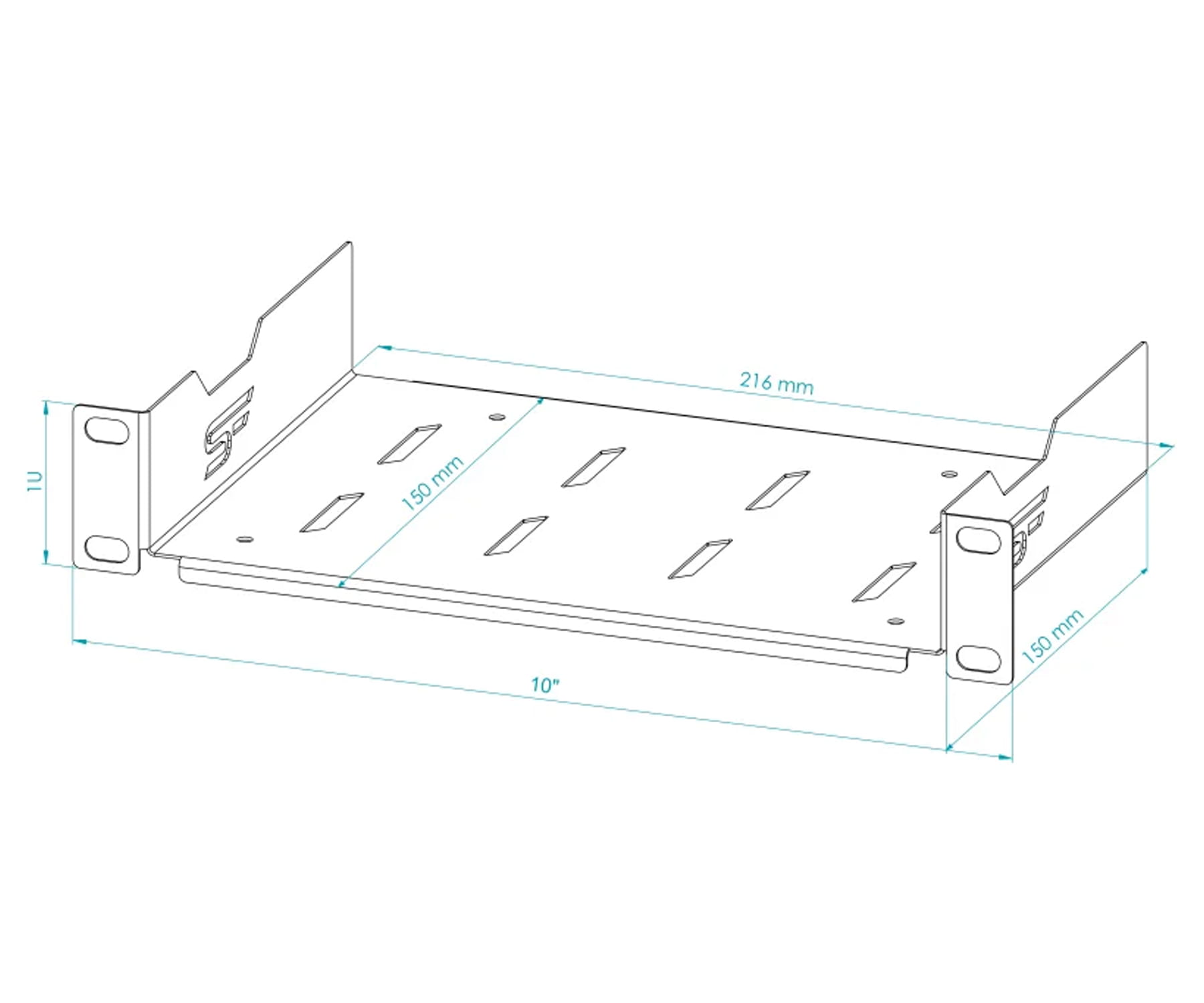 Półka do szafy RACK 10", przeznaczona do montażu urządzeń nie posiadających obudowy przystosowanej do montażu w szafach RACK; Szerokość: 10 " ; Głębokość: 150 mm ; Mocowanie: czteropunktowe ; Zastosowanie: Rack 10" - głębokość ≥ 160 mm ;