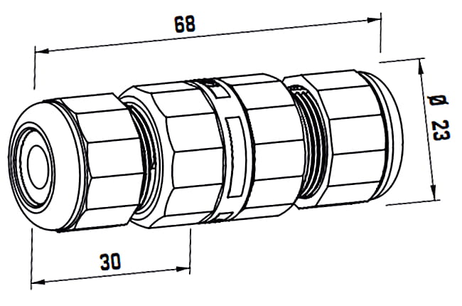 Ilość przepustów: 2 ; Ilość zacisków: 2 x 4 szt. ; Klasa szczelności: IP68 ; Średnica kabla: Ø 5 ... Ø 9 mm ; Wymiary: 68 x 23 x 23 mm ;