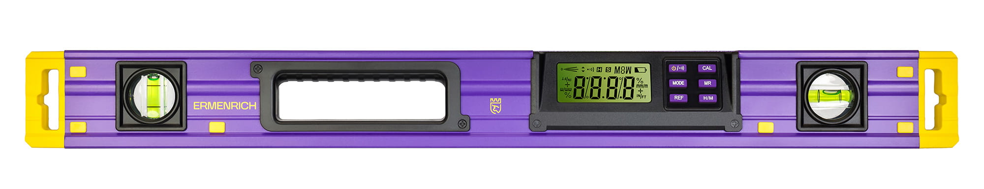 Ermenrich Verk LY60 to poziomica cyfrowa średniej długości przeznaczona do precyzyjnego ustawiania obiektów w płaszczyźnie poziomej i pionowej oraz do pomiaru różnych kątów. Umożliwia pomiar kątów w szerokim zakresie – 0–360° (4x90°). Urządzenie ma wbudowane fiolki z pęcherzykiem i może być używane jako standardowa poziomica pęcherzykowa. Poziomica doskonale sprawdza się podczas prac budowlanych, remontowych i instalacyjnych w zastosowaniach przemysłowych i domowych. Można stosować ją do precyzyjnego ustawiania obrabianych przedmiotów na stołach obrabiarek, płytach sinusowych, modułowych płytach montażowych oraz w mechanizmach montażowych na fundamentach i palach fundamentowych.