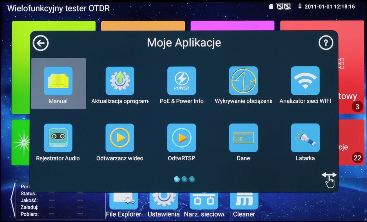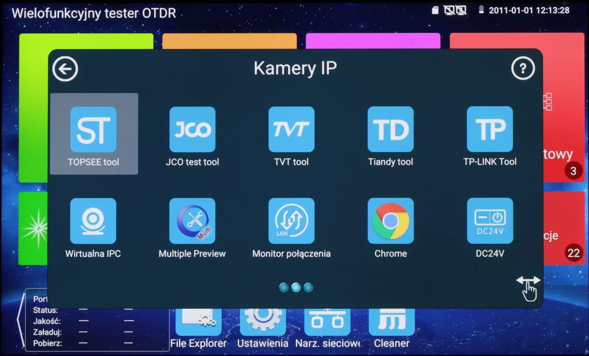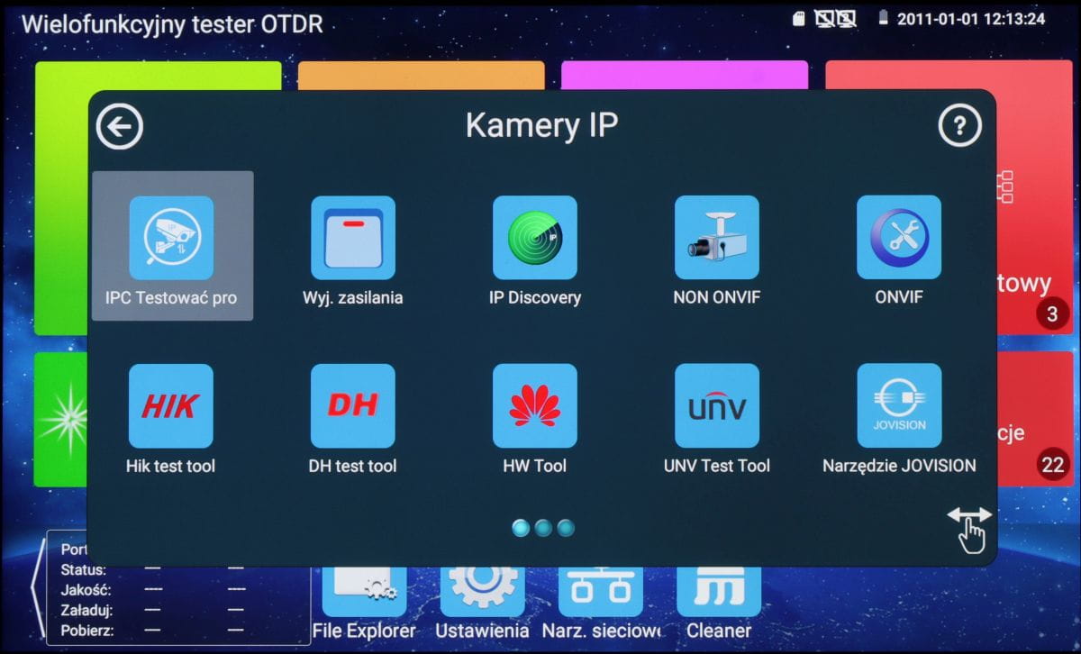 Reflektometr optyczny (OTDR) wraz z wielofunkcyjnym testerem kamer AHD, HD-CVI, HD-TVI, IP posiadający wiele dodatkowych funkcji, niezbędnych przy uruchamianiu instalacji CCTV i światłowodowych