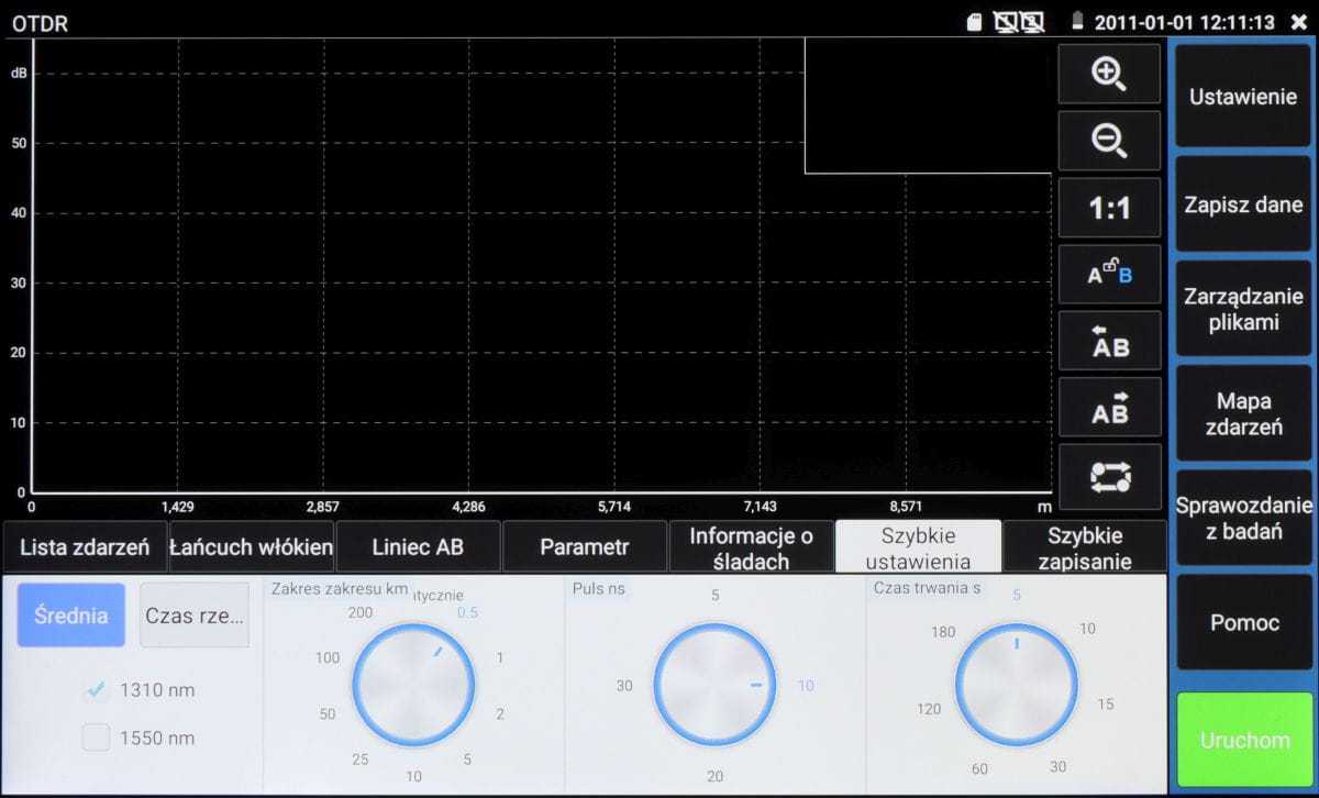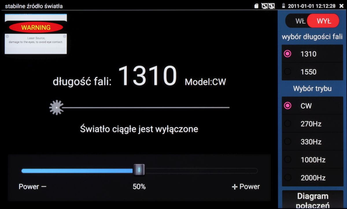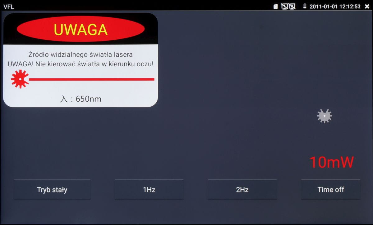 | VLS (VFL) - wizualny lokalizator uszkodzeń włókien światłowodowych: | Laser LD, 650 nm, 10 mW Zakres 8 km |