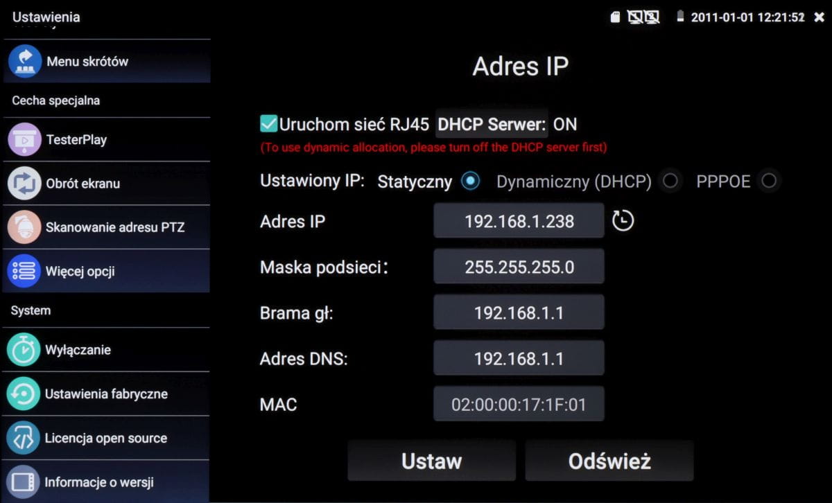 | Obsługa: | Menu graficzne - sterowanie dotykowe oraz za pomocą przycisków |