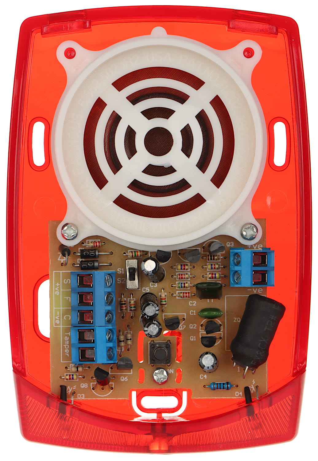 Poziom natężenia dźwięku: 112 dB/m ; Zasilanie: 9 ... 15 V DC ; Pobór prądu: max. 100 mA ; Kolor: Czerwony ; Temperatura pracy: -15 °C ... 40 °C ;