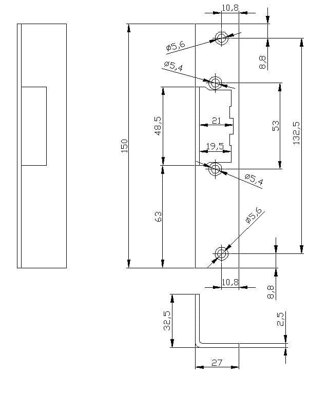 | Wymiary: | 32.5 x 150 x 27 mm Grubość blachy 2.5 mm |