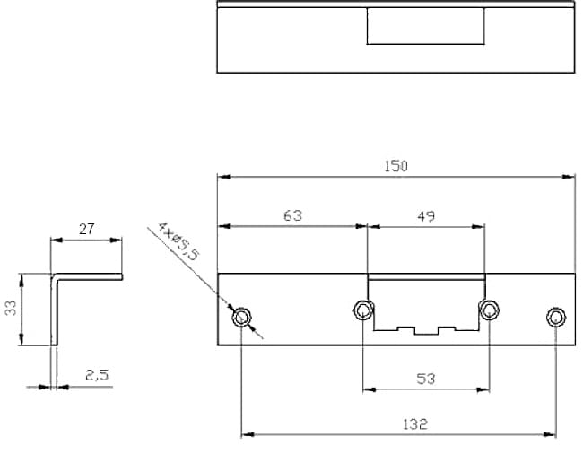 | Wymiary: | 30 x 150 x 30 mm Grubość blachy 2.5 mm |