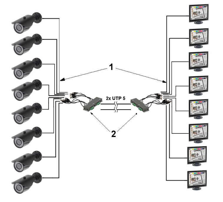 TR-8M przeznaczony jest do przesyłu sygnału wideo za pomocą skrętki komputerowejUrządzenie dopasowuje impedancję kabla koncentrycznego 75Ω do impedancji przewodu symetrycznego zapewniając przesył sygnału wizyjnego do 400m (skrętka komputerowa 5 kategorii) oraz eliminuje zakłócenia niesymetryczne