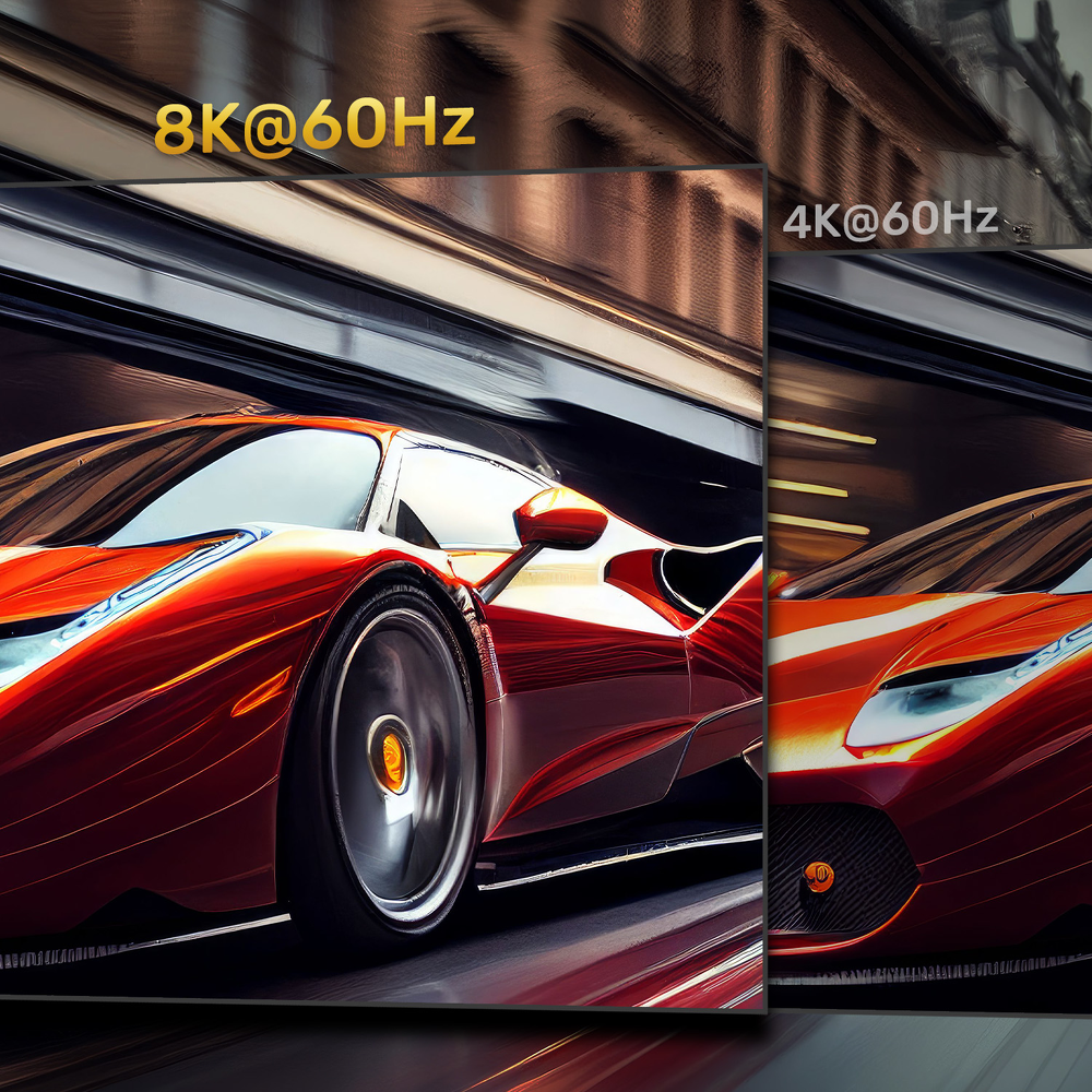 Rozdzielczość 8K – przewód może przesyłać obraz w jakości 8K@60Hz, 4k@120Hz, 2k@144Hz.