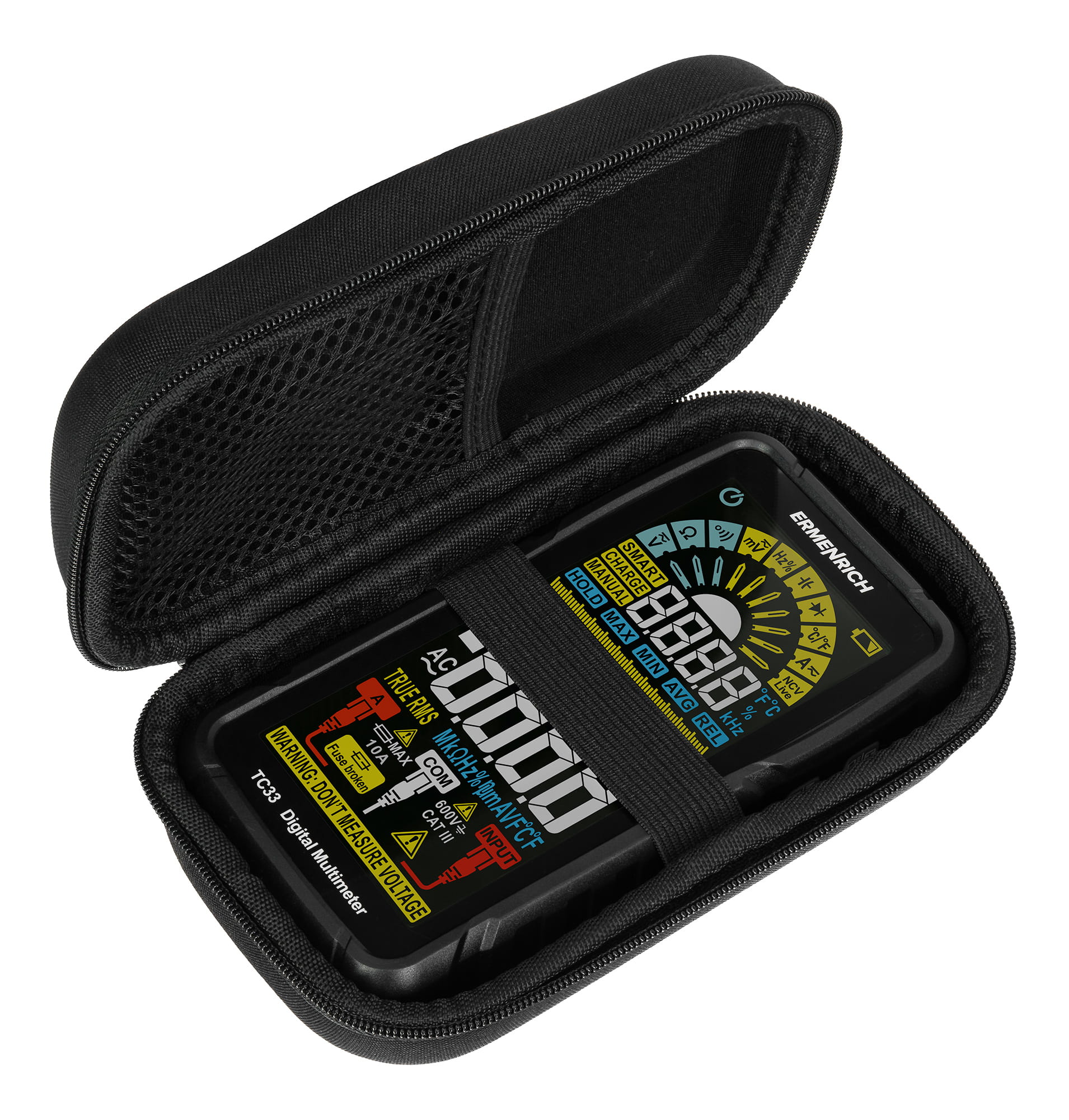 Uniwersalny miernik cyfrowy Ermenrich Zing TC33 to urządzenie pomiarowe True RMS, które nie zajmuje dużo miejsca w zestawie narzędzi elektryka i doskonale radzi sobie z diagnostyką i konserwacją sieci oraz urządzeń elektrycznych. Dzięki szerokiemu zakresowi funkcji uniwersalny miernik doskonale sprawdza się w profesjonalnych zastosowaniach. Może być również używany przez majsterkowiczów, ponieważ jest wyposażony w inteligentne funkcje, które ułatwiają obsługę urządzenia.