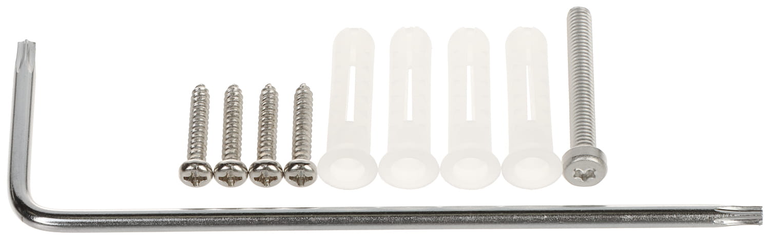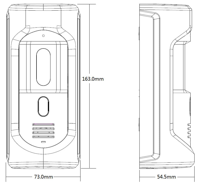 Przetwornik: 1/2.8 ", 2.1 Mpx CMOS ; Metoda kompresji obrazu: H.265 ; Wybrane cechy: Przycisk dzwonka, Sterowanie zamkiem, Komunikacja dwukierunkowa, Wykrywanie sabotażu - oderwania od podłoża ; Zasilanie: PoE (802.3af) 12 V DC ; Obudowa: Metalowa, Wodoodporna - IK10 ; Klasa szczelności: IP65 ;