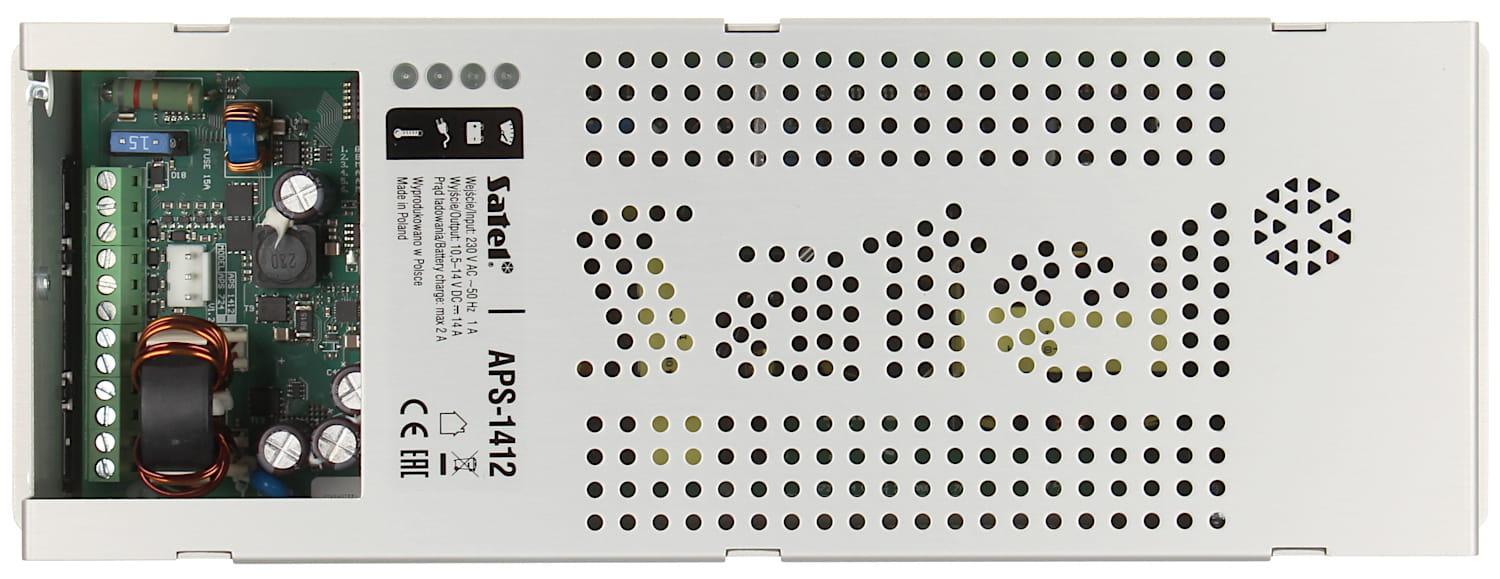 .Zasilacz buforowy jest przeznaczony do zasilania central alarmowych, czujników, zamków szyfrowych, kamer, manipulatorów, domofonów i innych urządzeń wchodzących w skład systemu alarmowego.APS-1412 posiada dedykowane złącze pozwalające na wspólpracę z urządzeniami firmy Satel.