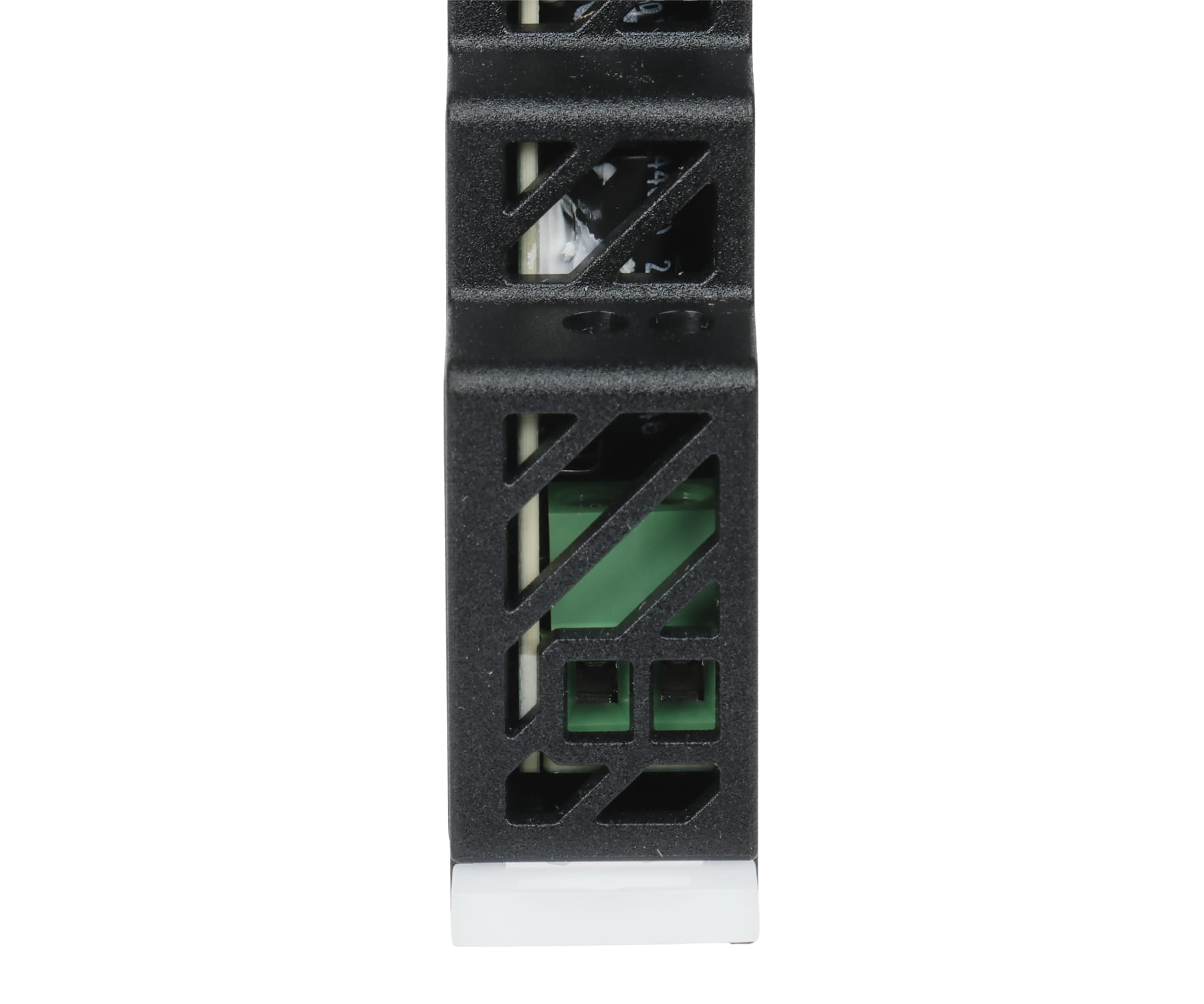 Zasilacz impulsowy instalowany na szynie TS35/7.5 lub 15 DIN, odporny na wysokie temperatury pracy (do 70°C)