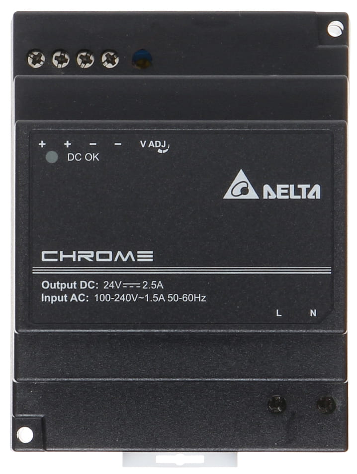 Napięcie wyjściowe: 24 V DC ; Regulacja napięcia wyjściowego: 24 ... 28 V ; Wydajność prądowa zasilacza: 2.5 A ; Moc zasilacza: 60 W ;