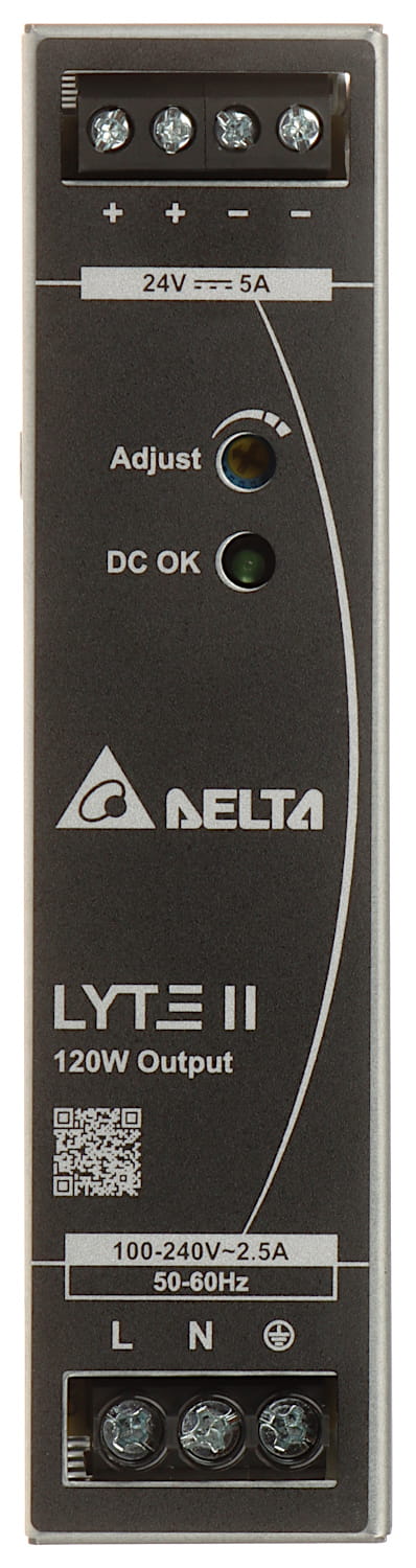 Napięcie wyjściowe: 24 V DC ; Regulacja napięcia wyjściowego: 21.6 ... 26.4 V DC ; Wydajność prądowa zasilacza: 5 A ; Moc zasilacza: 120 W ;