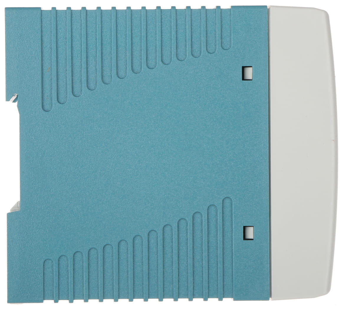 .Zasilacz impulsowy instalowany na szynie TS35/7.5 lub 15 DIN, odporny na wysokie temperatury pracy (do 60°C).