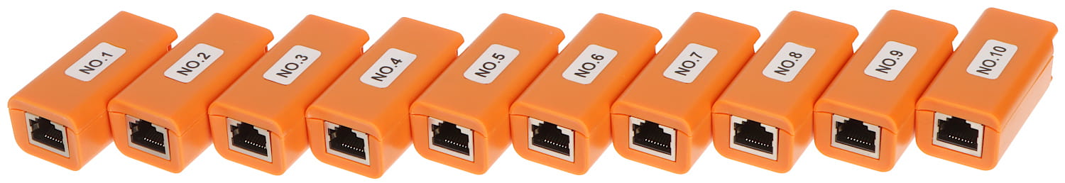 Zestaw terminatorów CS-TER-1/10 jest dodatkowym akcesorium do testerów CCTV serii CS-Hx, CS-Rx oraz CS-NTTerminatory o nadanych numerach ID w zakresie 1 ... 10 umożliwiają szybką i wygodną identyfikację przewodów zakończonych złączami RJ-45Tester po przyłączeniu do niego przewodu Ethernet z założonym na końcu terminatorem, wyświetli na ekranie numer ID danego terminatora