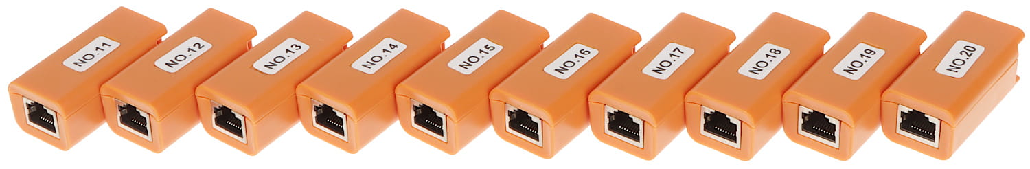 Zestaw terminatorów CS-TER-11/20 jest dodatkowym akcesorium do testerów CCTV serii CS-Hx, CS-Rx oraz CS-NTTerminatory o nadanych numerach ID w zakresie 11 ... 20 umożliwiają szybką i wygodną identyfikację przewodów zakończonych złączami RJ-45Tester po przyłączeniu do niego przewodu Ethernet z założonym na końcu terminatorem, wyświetli na ekranie numer ID danego terminatora