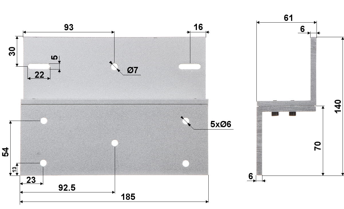 | Wymiary: | 185 x 140 x 61 / 75 mm - Zetownik 266 x 72 x 45 mm - Kątownik |