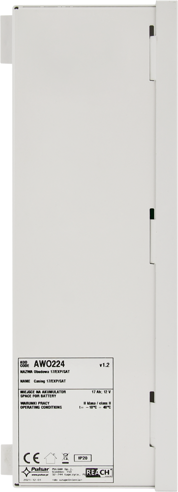 Pulsar AWO224 to uniwersalna, metalowa obudowa alarmowa przeznaczona do montażu natynkowego elementów systemów zabezpieczeń, w szczególności modułów rozszerzeń i urządzeń komunikacyjnych współpracujących z centralami SATEL.