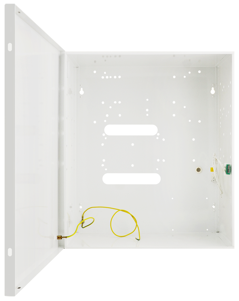 Obudowa występuje w wersji pustej (PU), bez transformatora w zestawie, co pozwala na elastyczny dobór zasilania zgodnie z wymaganiami instalacji. Przewidziano miejsce na akumulator ołowiowo-kwasowy 12 V o pojemności 24 Ah.
